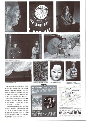 本展は土門の生誕100年を記念して国内巡回され好評を博した「土門拳の昭和」より、土門拳記念館の所蔵品により構成するものです。県内においては平成11年の富山県水墨美術館の展覧会以来、久々の土門拳の特集展であり、約300点を一堂に陳列いたします。2013となみチューリップフェア特別展として開催いたします。